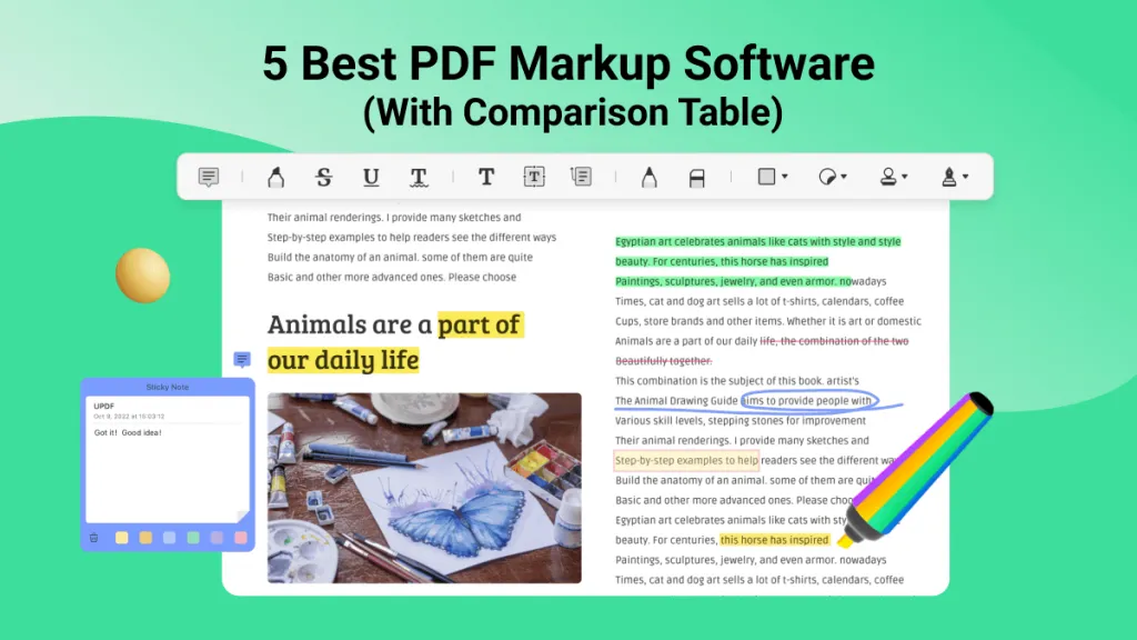 - Annotate PDFs: Like Sumnotes, UPDF offers extensive annotation tools, allowing users to highlight text, add text boxes, attachments, and shapes. This makes annotating documents straightforward and efficient. Moreover, it offers 13 markup tools, including sticky notes, stickers, stamps, text box, etc., to satisfy different annotation needs.