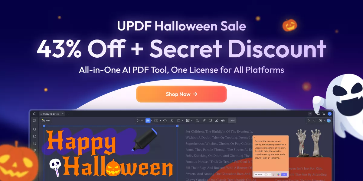 If you are still figuring out your spooky plans for Halloween, we have a shortcut! Try UPDF AI Online to brainstorm fun Halloween ideas in seconds. Ask for themes, costumes, and fun activity ideas. It gives you creative suggestions right away. The first 100 questions are free for you. You don't even need to sign up. Head to UPDF AI Online by clicking the button below to spark your Halloween ideas. And if you want to upgrade to pro version, the price is very cheap now as it has a spooky Halloween discount for you.