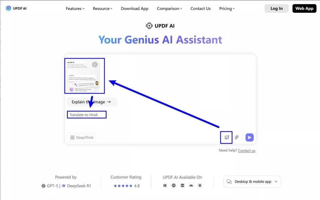 With UPDF AI features, you can translate English image to Hindi quickly. It works Online, Windows, and Mac.